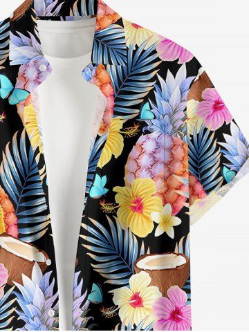Plus Size Tropical Leaf Hibiscus Flower Pineapple Coconut Print Hawaii Button Pocket Shirt For Men - Multi - 2xl