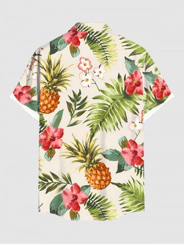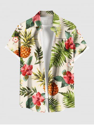 Short Sleeves Shirts > Plus Size Tropical Leaf Hibiscus Flower Pineapple Print Hawaii Button Pocket Shirt For Men