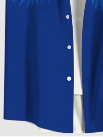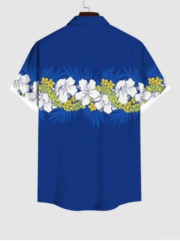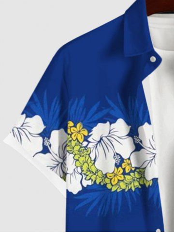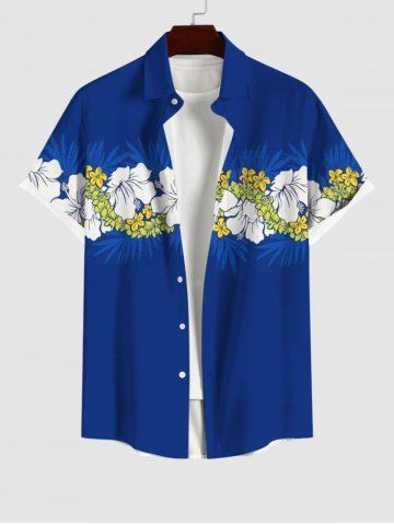 Plus Size Tropical Leaf Hibiscus Flower Print Buttons Pocket Hawaii Shirt For Men - Blue - Xl