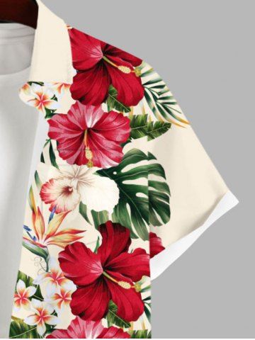 Short Sleeves Shirts > Plus Size Tropical Leaf Hibiscus Flower Print Buttons Pocket Hawaii Shirt For Men