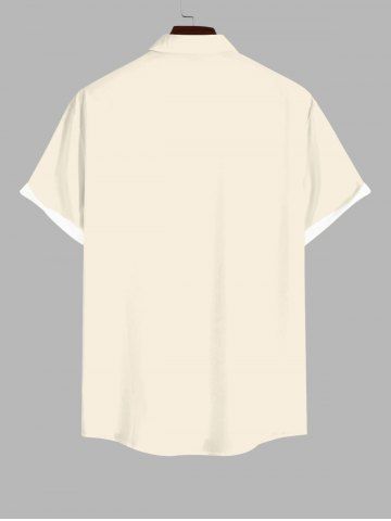 Plus Size Tropical Leaf Hibiscus Flower Print Buttons Pocket Hawaii Shirt For Men - Light Coffee - 3xl