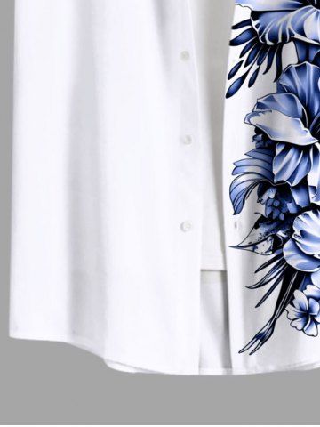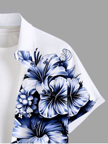 Plus Size Tropical Leaf Hibiscus Flower Print Buttons Pocket Hawaii Shirt For Men - White - S