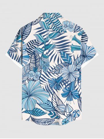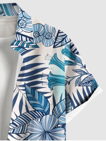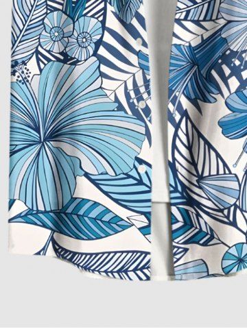 Plus Size Tropical Leaf Hibiscus Flower Print Buttons Pocket Hawaii Shirt For Men - Light Blue - 6xl