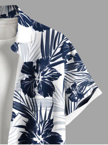 Plus Size Tropical Leaf Hibiscus Flower Print Buttons Pocket Hawaii Shirt For Men - Blue - Xl