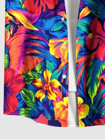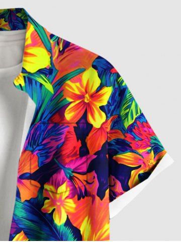 Short Sleeves Shirts > Plus Size Tropical Leaf Hibiscus Flower Print Buttons Pocket Hawaii Shirt For Men