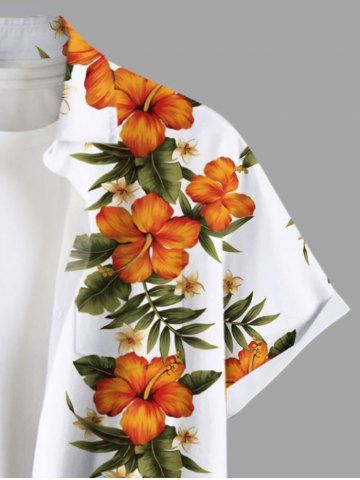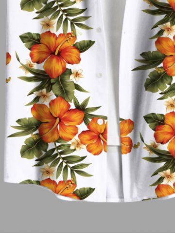 g*****s5Plus Size Tropical Leaf Hibiscus Flower Print Buttons Pocket Hawaii Shirt For MenColor: WHITE Size: MWe love the Tropical Leaf Hibiscus Flower Print, we can either use light green, black or khaki pants or skirt. The Hibiscus is very colorful and crisp We plan on wearing them on our Asia cruise this fall. Everyone love the matching outfits and we get so many compliments.