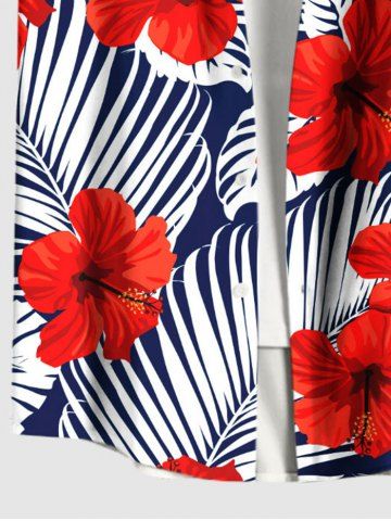 Plus Size Tropical Leaf Hibiscus Flower Print Buttons Pocket Hawaii Shirt For Men - Red - 2xl