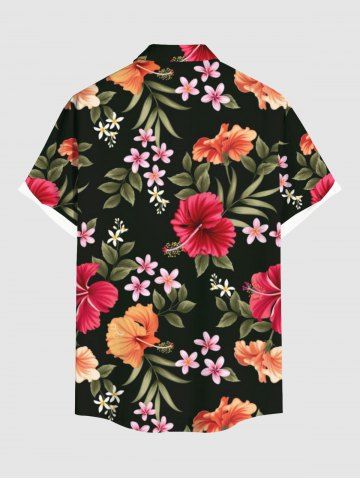 Short Sleeves Shirts > Plus Size Tropical Leaf Hibiscus Flower Print Hawaii Button Pocket Shirt For Men