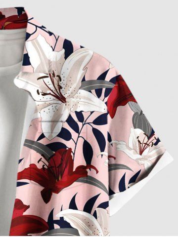Plus Size Tropical Leaf Hibiscus Flower Print Hawaii Button Pocket Shirt For Men - Red - 6xl