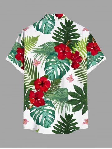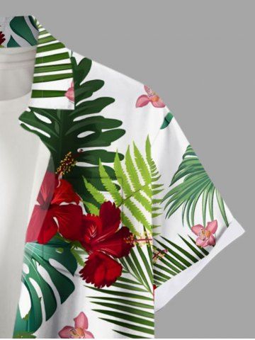Short Sleeves Shirts > Plus Size Tropical Leaf Hibiscus Flower Print Hawaii Button Pocket Shirt For Men