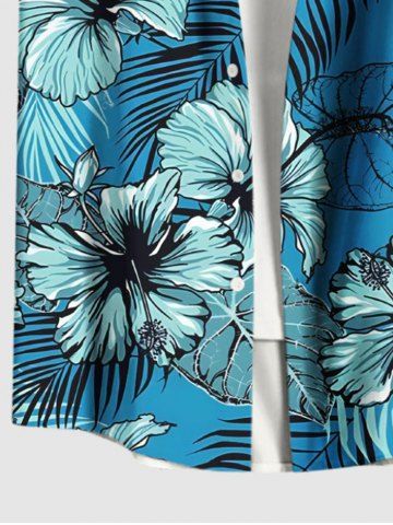 Plus Size Tropical Leaf Hibiscus Flower Print Hawaii Button Pocket Shirt For Men - Blue - 5xl