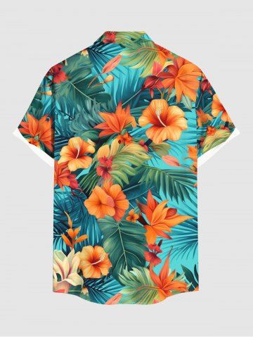 Short Sleeves Shirts > Plus Size Tropical Leaf Hibiscus Flower Print Hawaii Button Pocket Shirt For Men