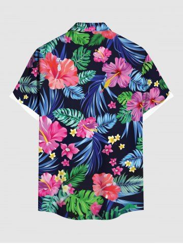 Short Sleeves Shirts > Plus Size Tropical Leaf Hibiscus Flower Print Hawaii Button Pocket Shirt For Men