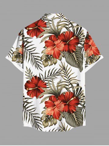 Plus Size Tropical Leaf Hibiscus Flower Print Hawaii Button Pocket Shirt For Men - White - M