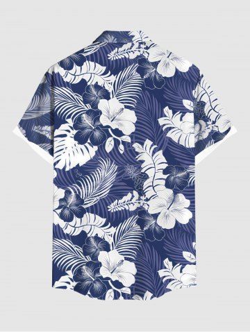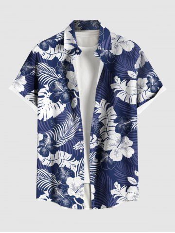 Short Sleeves Shirts > Plus Size Tropical Leaf Hibiscus Flower Print Hawaii Button Pocket Shirt For Men