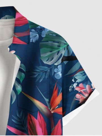 Short Sleeves Shirts > Plus Size Tropical Leaf Hibiscus Flower Print Hawaii Button Pocket Shirt For Men