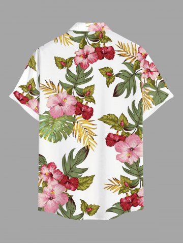 Plus Size Tropical Leaf Hibiscus Flower Print Hawaii Button Pocket Shirt For Men - White - 6xl
