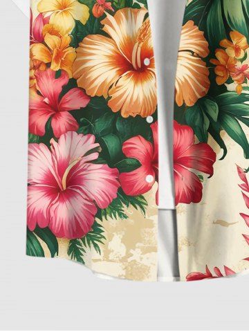 Plus Size Tropical Leaf Hibiscus Flower Print Hawaii Button Pocket Shirt For Men - Multi-a - S