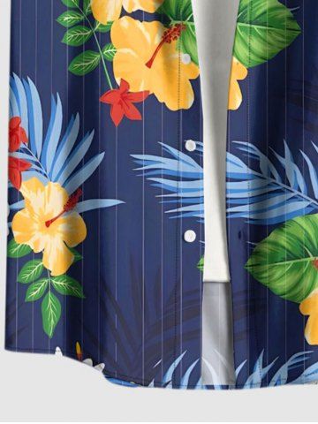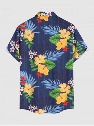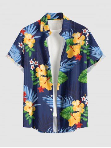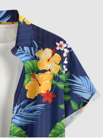 Short Sleeves Shirts > Plus Size Tropical Leaf Hibiscus Flower Print Hawaii Button Pocket Shirt For Men
