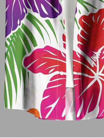 Short Sleeves Shirts > Plus Size Tropical Leaf Hibiscus Flower Print Hawaii Button Pocket Shirt For Men