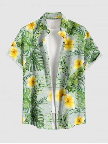 Plus Size Tropical Leaf Hibiscus Flower Print Hawaii Button Pocket Shirt For Men - Green - 5xl