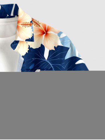 Short Sleeves Shirts > Plus Size Tropical Leaf Hibiscus Flower Print Hawaii Button Pocket Shirt For Men