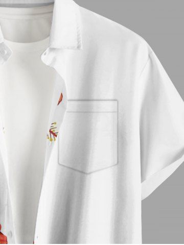 Plus Size Tropical Leaf Hibiscus Flower Print Hawaii Button Pocket Shirt For Men - White - S