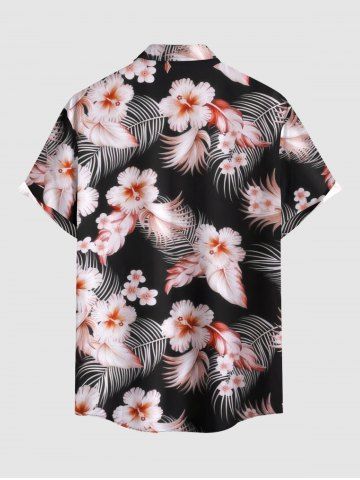 Plus Size Tropical Leaf Hibiscus Flower Print Hawaii Button Pocket Shirt For Men - Black - S