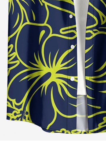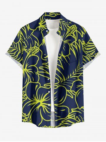 Short Sleeves Shirts > Plus Size Tropical Leaf Hibiscus Flower Print Hawaii Button Pocket Shirt For Men