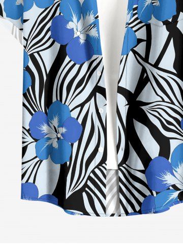Plus Size Tropical Leaf Hibiscus Flower Print Hawaii Button Pocket Shirt For Men - Sky Blue - M