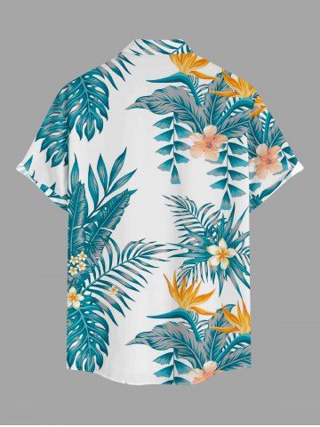 Short Sleeves Shirts > Plus Size Tropical Leaf Hibiscus Flower Print Hawaii Button Pocket Shirt For Men