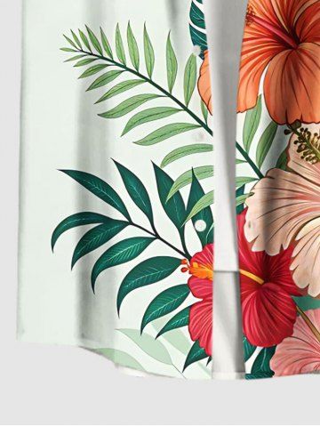 Short Sleeves Shirts > Plus Size Tropical Leaf Hibiscus Flower Print Hawaii Buttons Pocket Shirt For Men