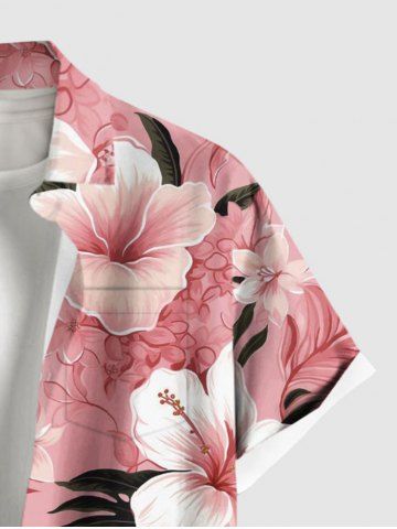 Plus Size Tropical Leaf Hibiscus Flower Print Hawaii Buttons Pocket Shirt For Men - Light Pink - 5xl