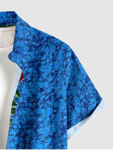 Plus Size Tropical Leaf Hibiscus Flower Print Hawaii Buttons Pocket Shirt For Men - Sky Blue - M