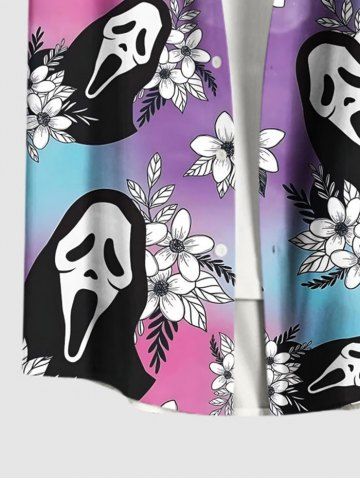 Plus Size Tropical Leaf Hibiscus Flower Skull Ombre Print Hawaii Button Pocket Shirt For Men - Purple - 4xl