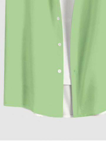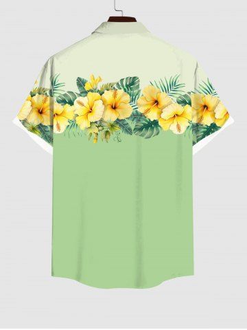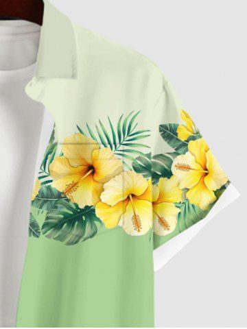 Plus Size Tropical Leaf Hibiscus Flowers Colorblock Print Buttons Pocket Hawaii Shirt For Men - Green - Xl