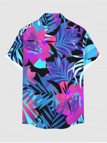Short Sleeves Shirts > Plus Size Tropical Leaf Hibiscus Flowers Print Buttons Pocket Hawaii Shirt For Men
