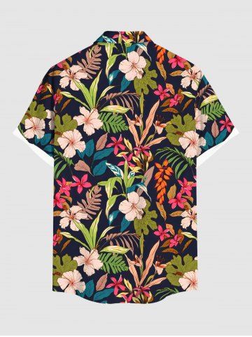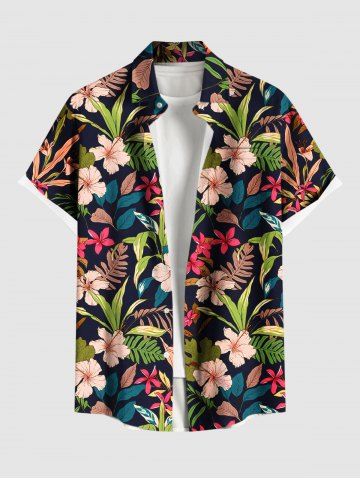 Plus Size Tropical Leaf Hibiscus Flowers Print Buttons Pocket Hawaii Shirt For Men - Multi-a - 4xl