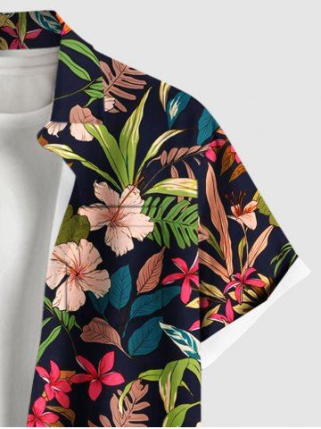 Short Sleeves Shirts > Plus Size Tropical Leaf Hibiscus Flowers Print Buttons Pocket Hawaii Shirt For Men