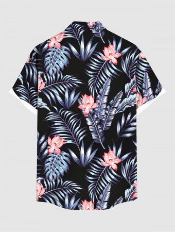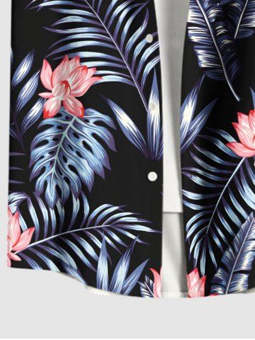 Plus Size Tropical Leaf Hibiscus Flowers Print Buttons Pocket Hawaii Shirt For Men - Black - 4xl