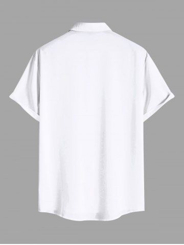 Plus Size Tropical Leaf Hibiscus Flowers Print Buttons Pocket Hawaii Shirt For Men - White - Xl