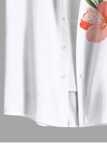 Plus Size Tropical Leaf Hibiscus Flowers Print Buttons Pocket Hawaii Shirt For Men - White - 2xl