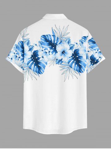 Plus Size Tropical Leaf Hibiscus Flowers Print Buttons Pocket Hawaii Shirt For Men - White - S