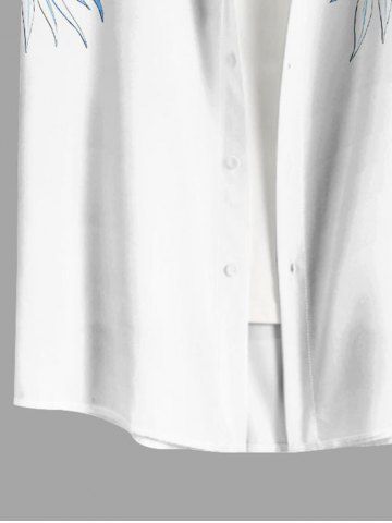 Plus Size Tropical Leaf Hibiscus Flowers Print Buttons Pocket Hawaii Shirt For Men - White - M