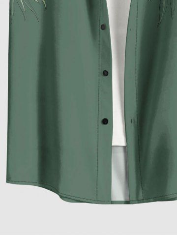 Plus Size Tropical Leaf Hibiscus Flowers Print Buttons Pocket Hawaii Shirt For Men - Green - Xl