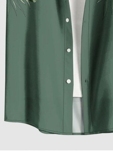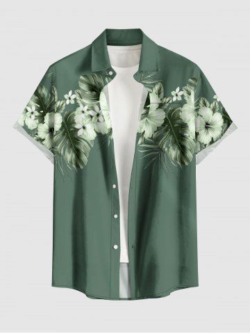 Plus Size Tropical Leaf Hibiscus Flowers Print Buttons Pocket Hawaii Shirt For Men - Green - 3xl