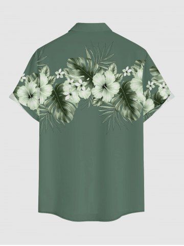 Plus Size Tropical Leaf Hibiscus Flowers Print Buttons Pocket Hawaii Shirt For Men - Green - 6xl