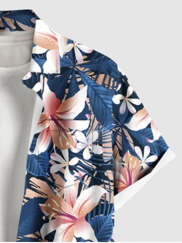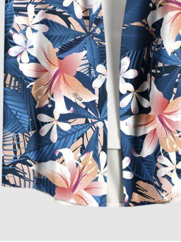 Plus Size Tropical Leaf Hibiscus Flowers Print Buttons Pocket Shirt For Men - Blue - 6xl