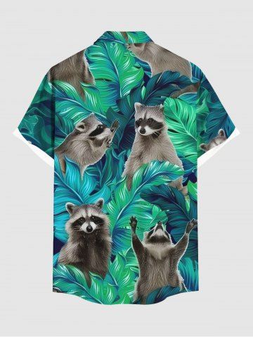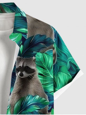 Short Sleeves Shirts > Plus Size Tropical Leaf Little Raccoon Print Buttons Pocket Hawaii Shirt For Men