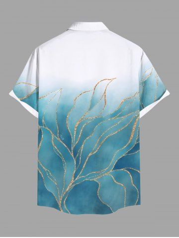 Plus Size Tropical Leaf Ombre Sparkling Sequin 3D Print Buttons Pocket Hawaii Shirt For Men - Light Green - 4xl